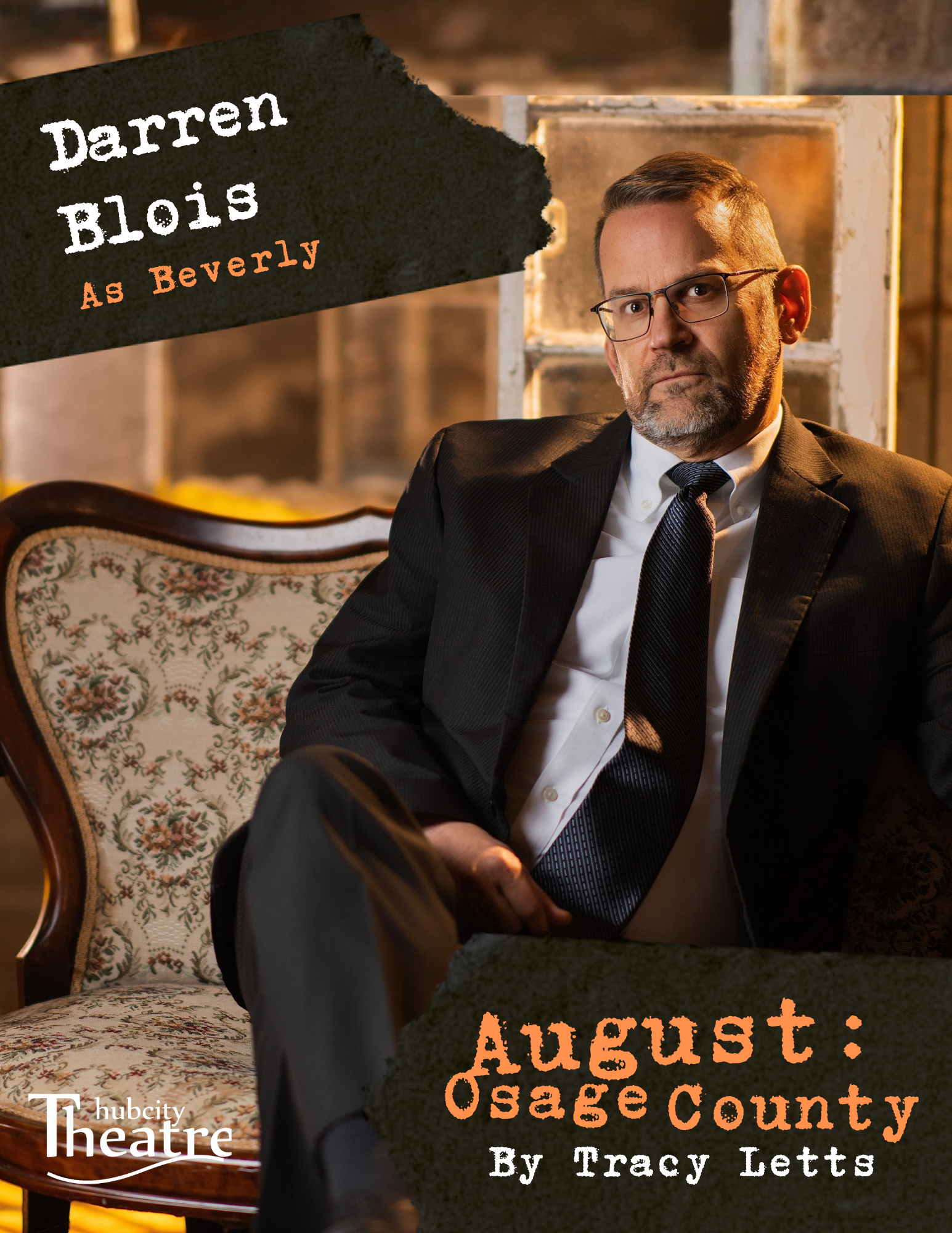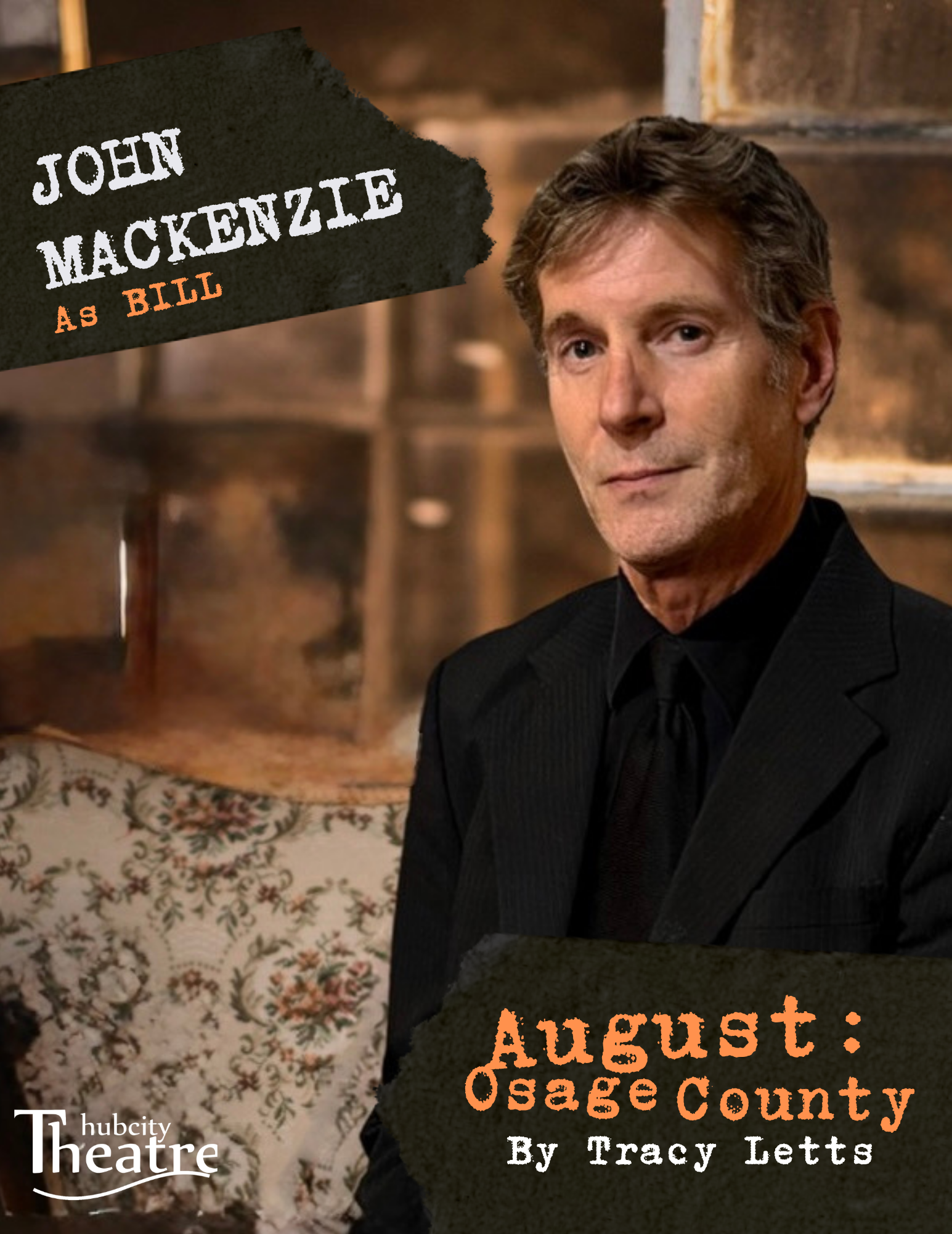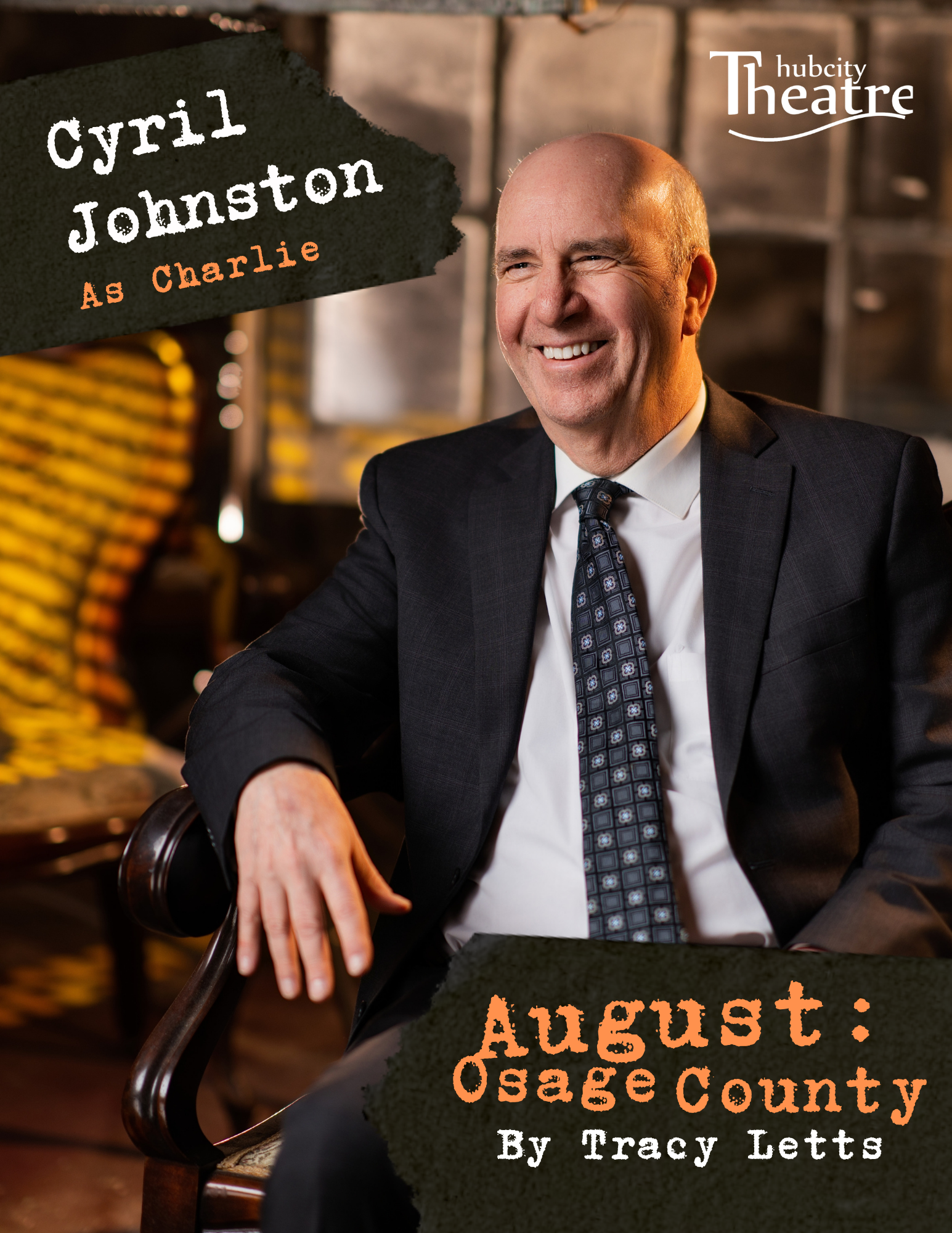 "I just love working with Hubcity Theatre. It's such a community of talented people committed to telling great stories with great characters. August:Osage County is one of those stories, and Beverly Weston is one of those characters. Bev may vanish after the first scene, but in that first scene are the seeds that are planted, to bear fruit in the complex family dynamics that follow in his wake. Enjoy the show!