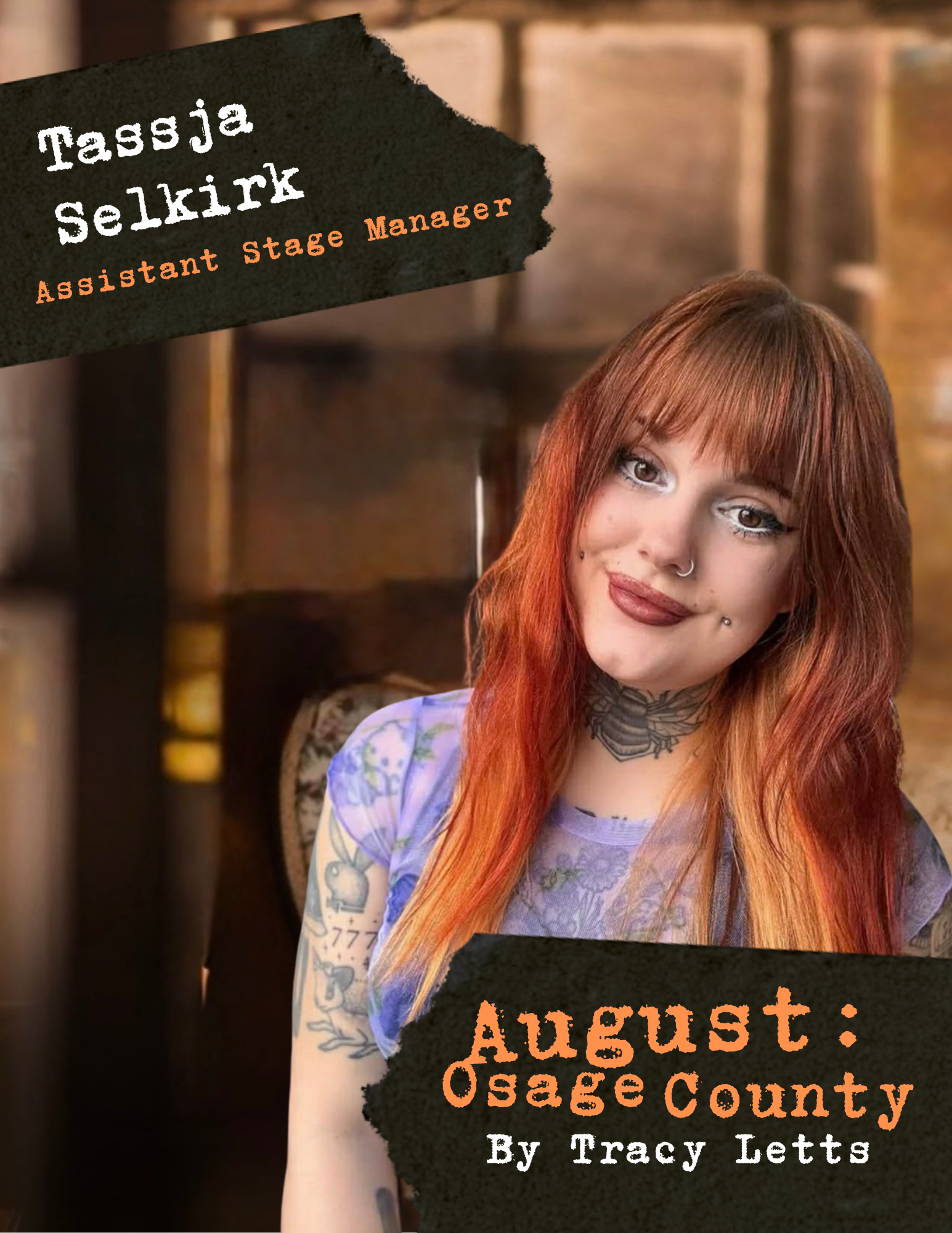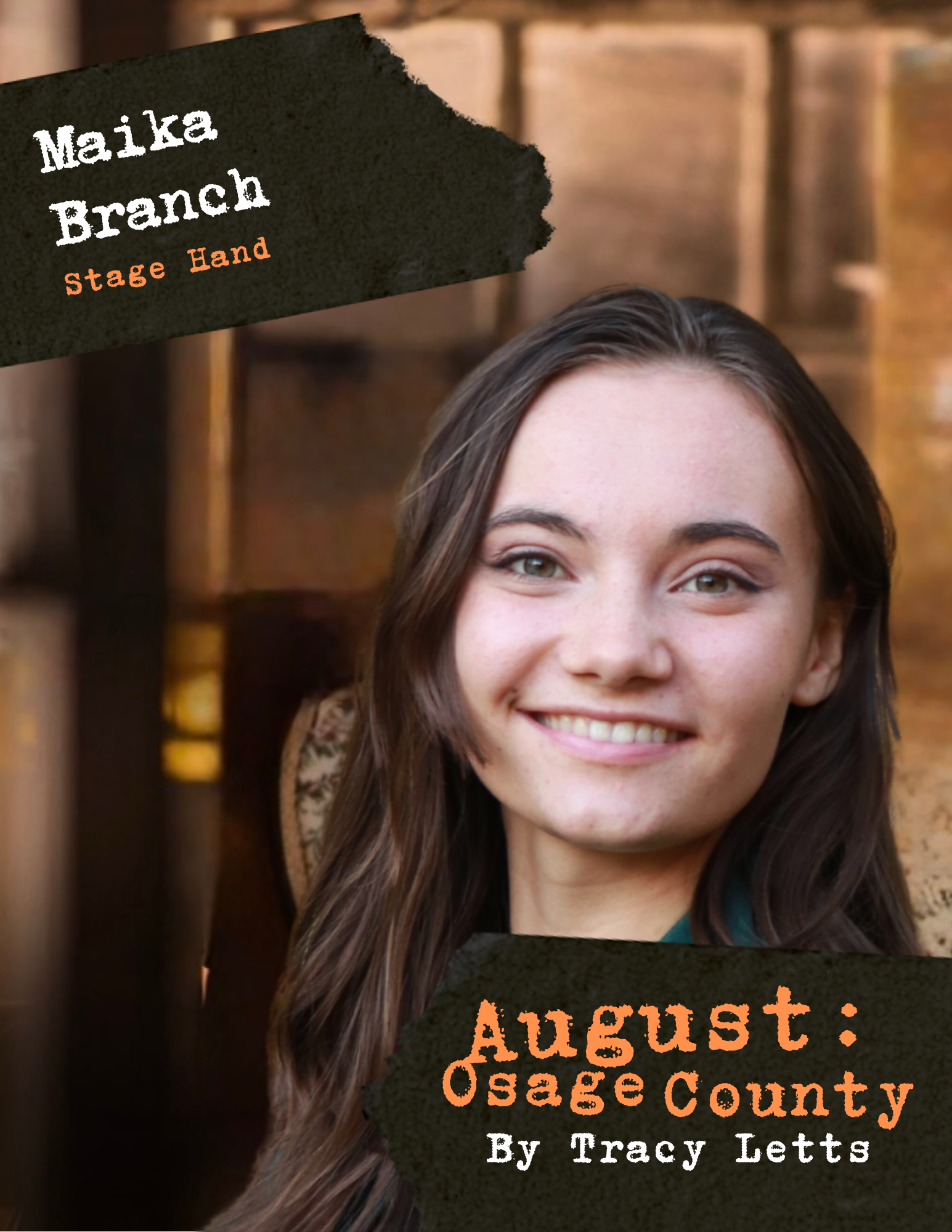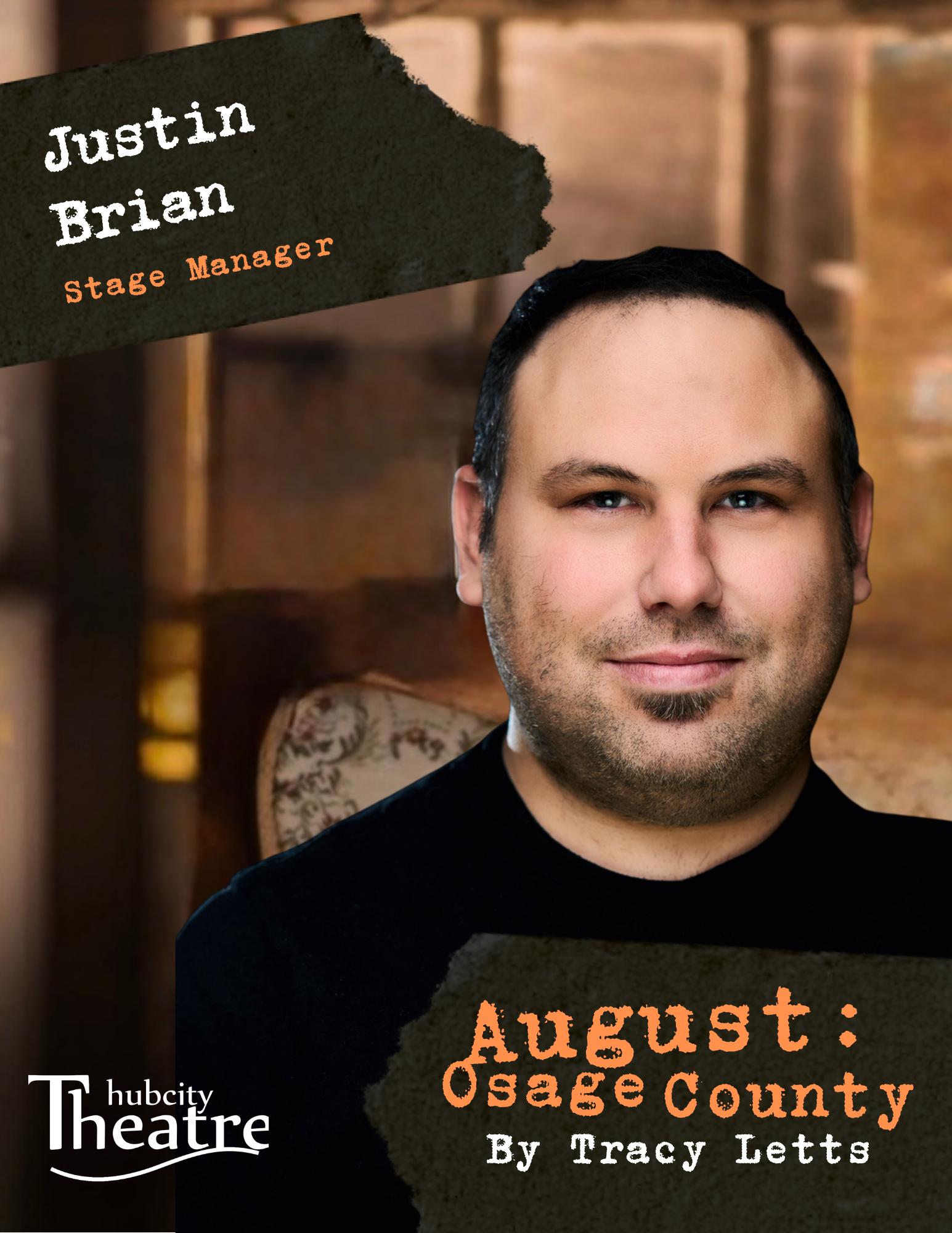 I’d especially like to thank Justin Brian, Stage Manager, and Chris Meaney, Technical Director, without whom this show would literally never come to fruition. Thank you both for your tireless work bringing Osage County to life.